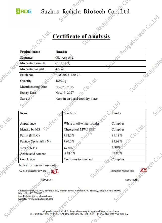 Our Pinealon is a high-purity, short-chain peptide bioregulator (Glu-Asp-Arg) specifically designed to support the pineal gland and central nervous system. This peptide is unique for its small molecular size, which allows it to cross the blood-brain barrier effectively and interact directly with neuronal DNA to support cellular health.